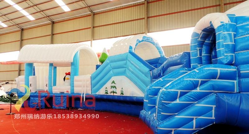 2、環(huán)保材料 冰雪世界充氣城堡用一等環(huán)保夾網(wǎng)PVC為產(chǎn)品原材料進(jìn)行產(chǎn)品生產(chǎn),無毒、無危、無刺激性,對皮膚不會引起過敏反應(yīng),尤其是小孩子。
