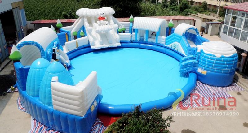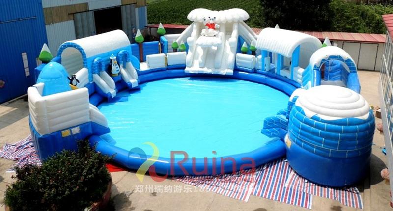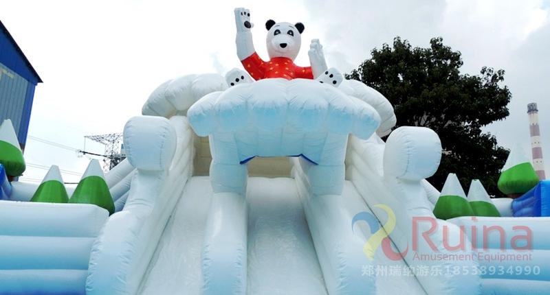 冰雪世界充氣城堡以小朋友喜愛的冰雪企鵝為主題元素,造型逼真,搭配上充氣水池使用,營造出了一個逼真的冰雪世界,非常討小孩子喜歡。該款充氣城堡搭配充氣泳池使用,滿足親自游玩的需求!再加上沖浪水滑梯和支架水池的結(jié)合,定會讓孩子有個開心的游玩經(jīng)驗(yàn)